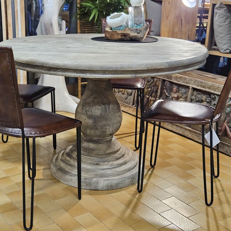 Tavolo da pranzo rotondo BALTIMORA in legno massiccio di mango.